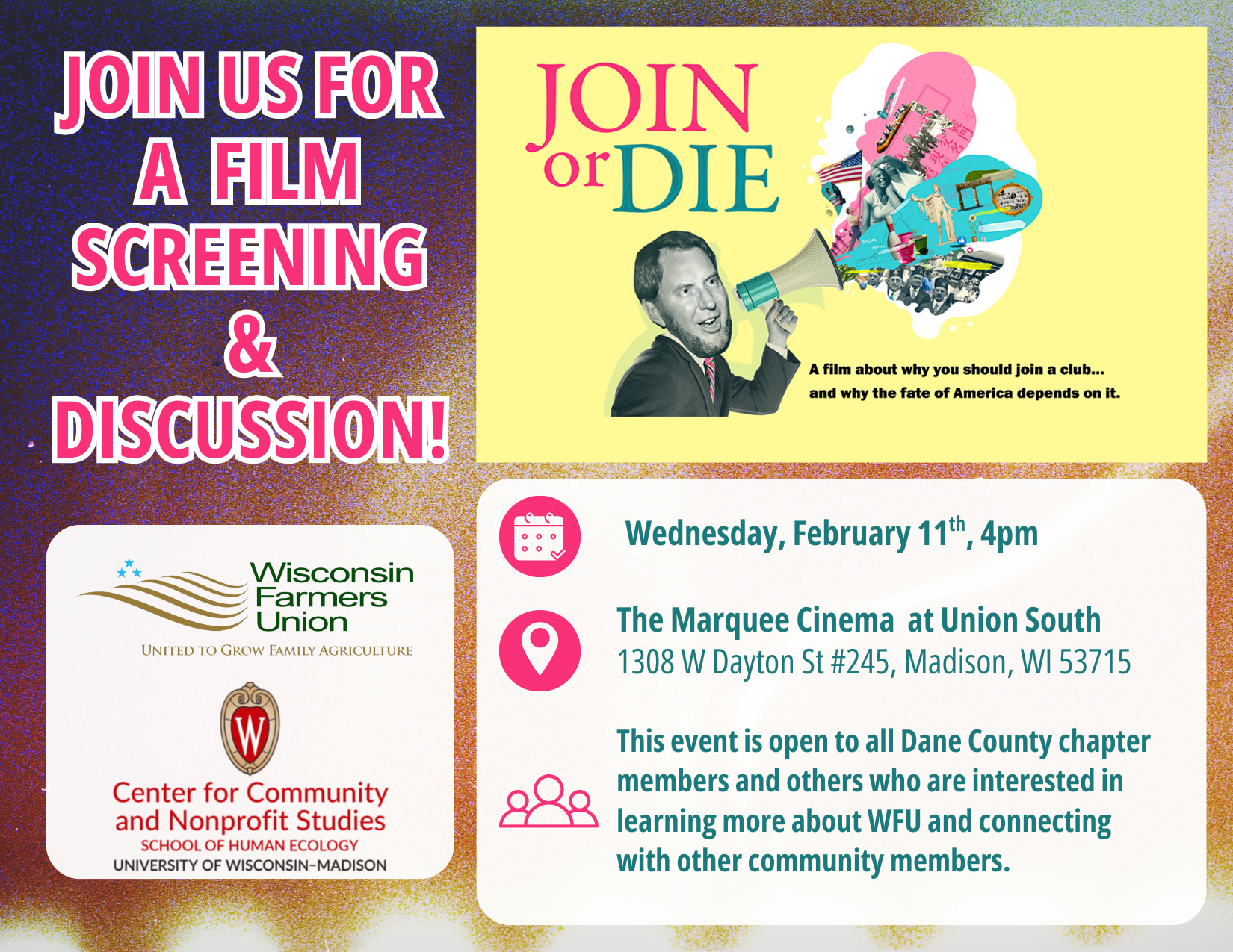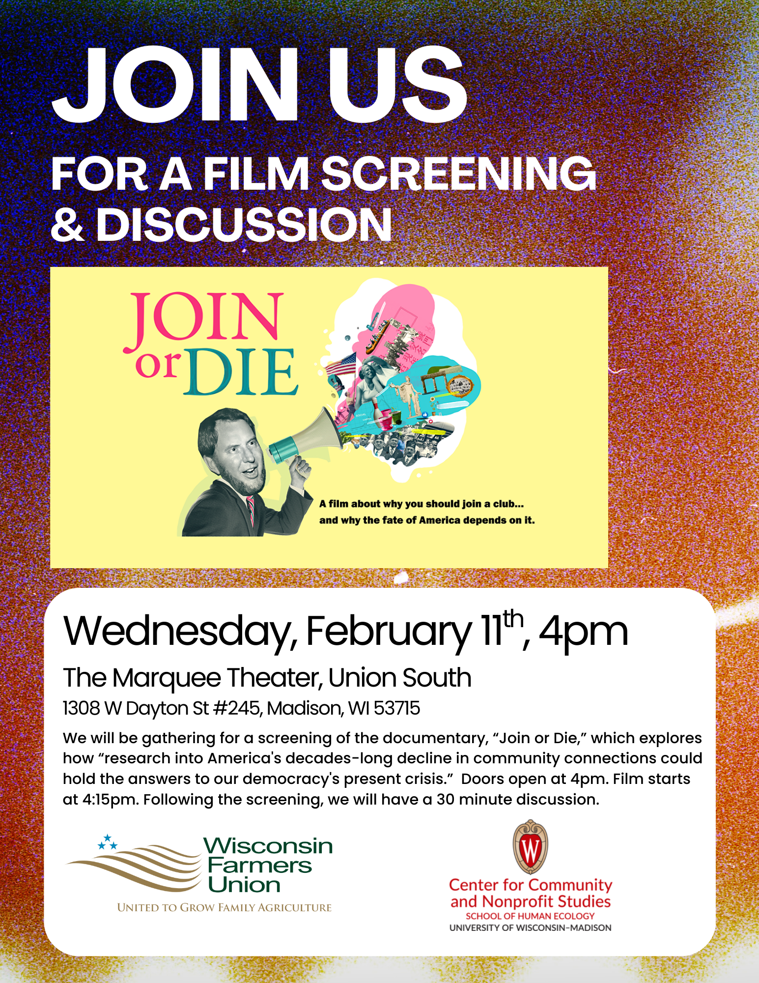 Co-hosted by Wisconsin Farmers Union and The Center for Community and Nonprofit Studies. All are invited!