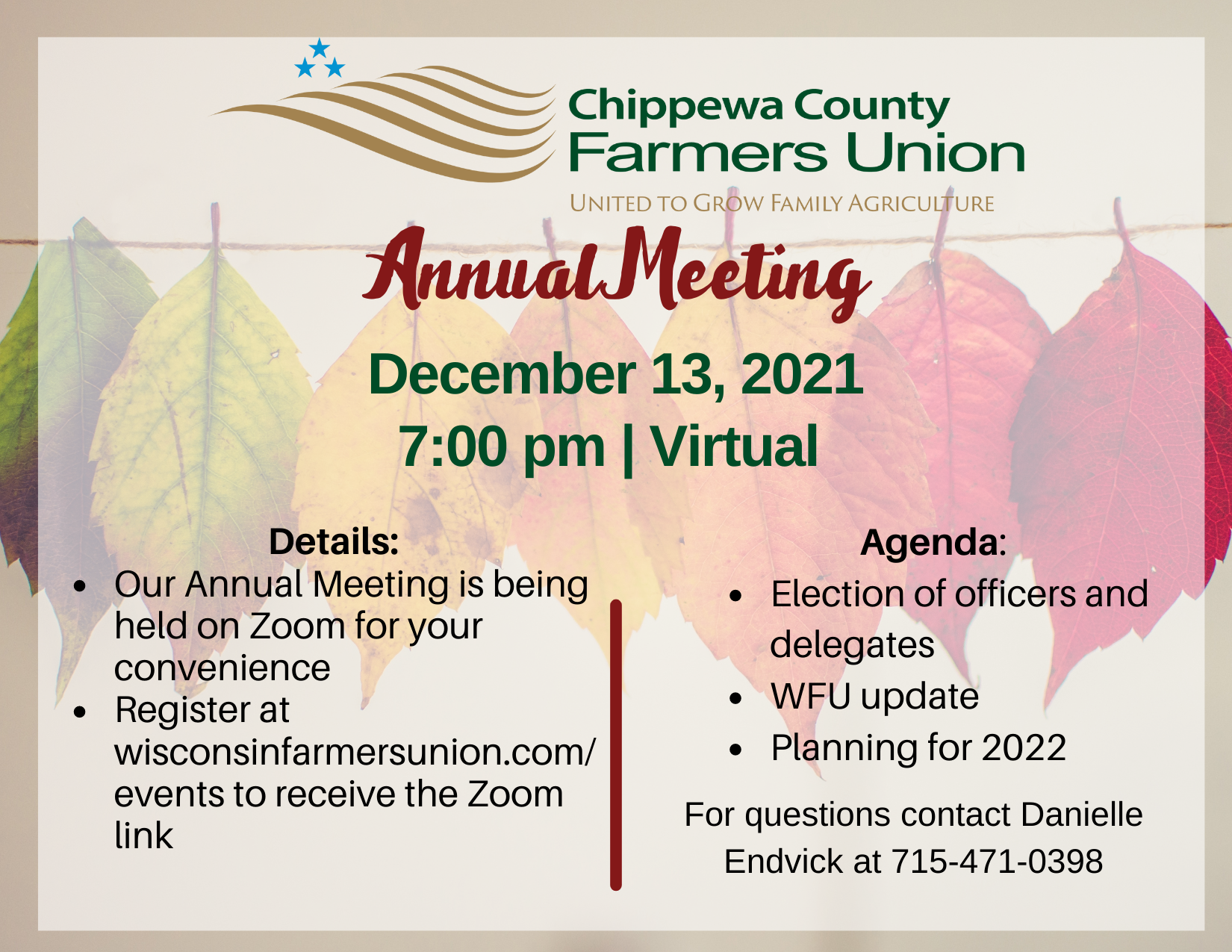 Please join us for our 2021 WFU Chippewa County Annual Meeting on Monday, December 13th